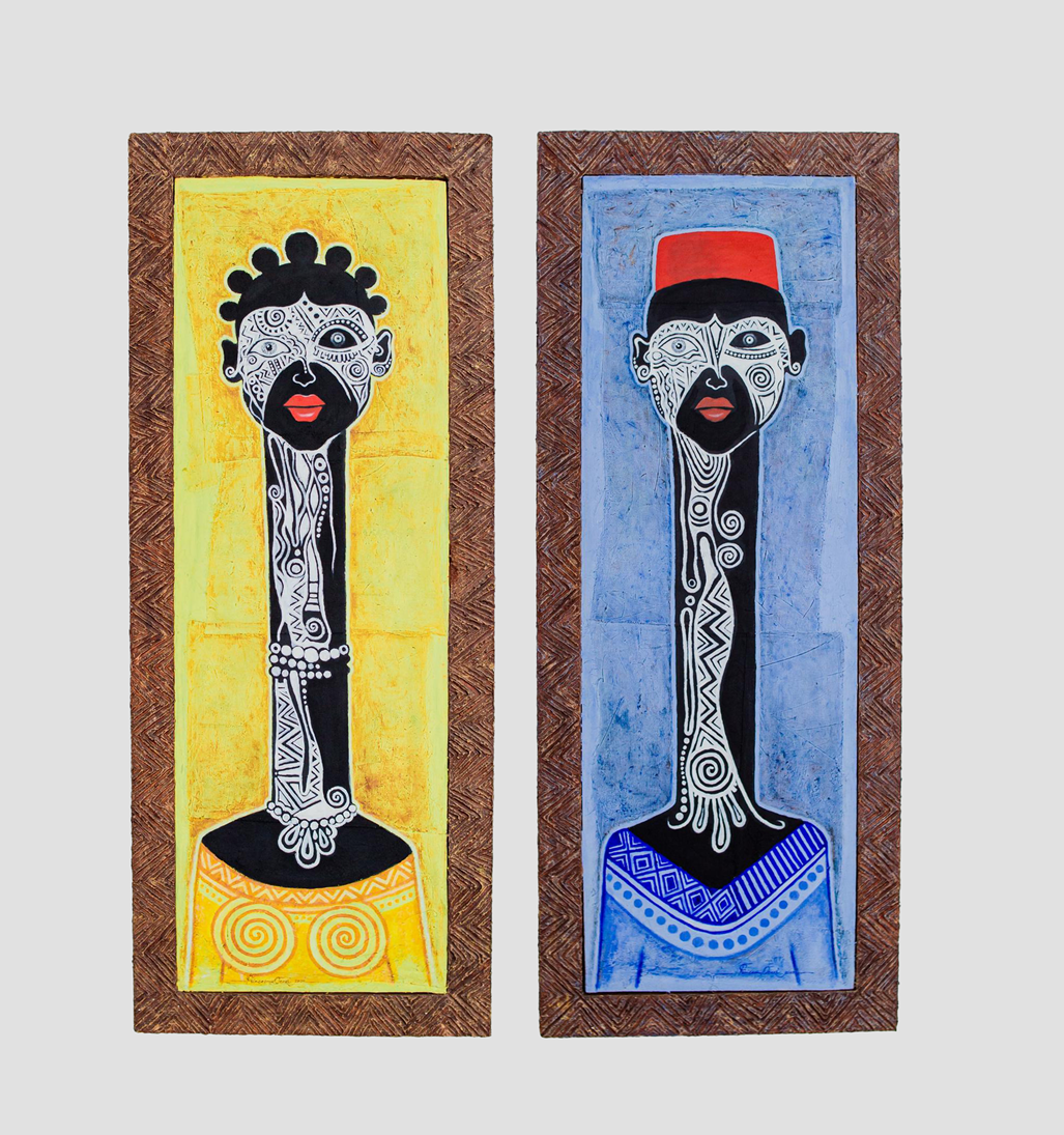 “The Mask (Igwe and Lo-lo)” presents a captivating twin collection, exploring the complexities of identity and duality. Igwe, representing strength and authority, and Lo-lo, embodying fluidity and adaptability, converge in a dynamic dance. These abstract pieces invite viewers to ponder the interplay between contrasting personas.
